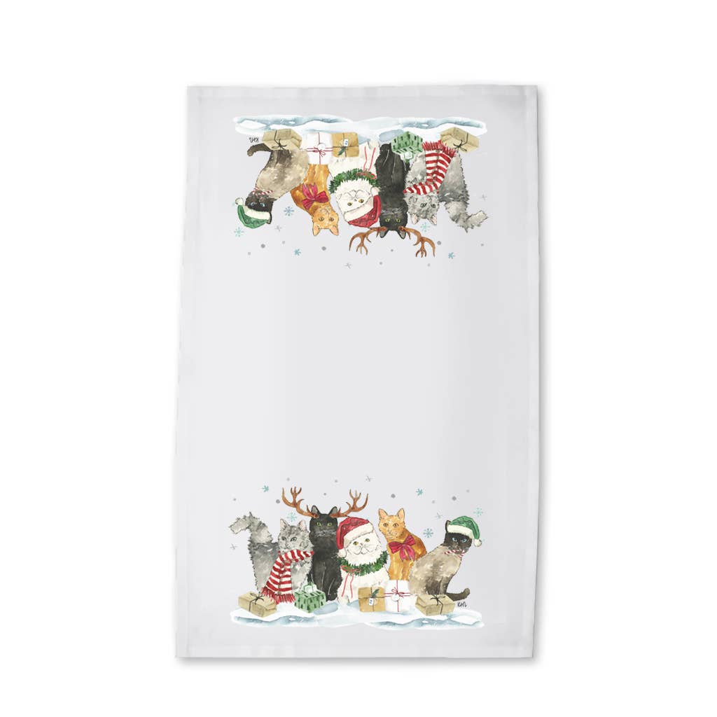 Christmas Cats Kitchen Towel - Holiday Tea Towel